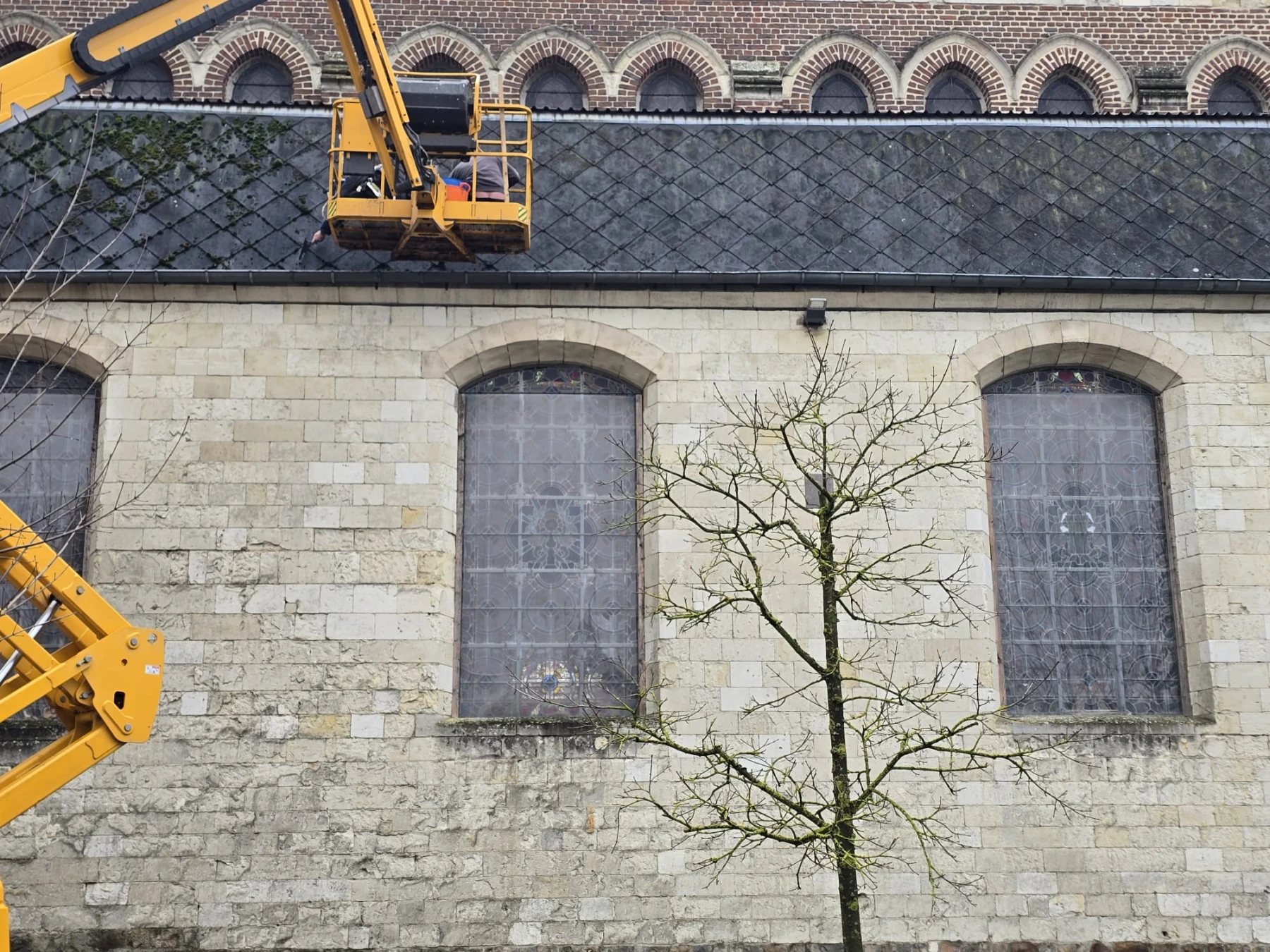 Les travaux ont été réalisés à l'aide d'une nacelle élévatrice , permettant un accès sécurisé et précis à l'ensemble de la toiture.